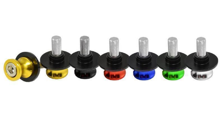 Ständeraufnahmen, sogenannte Diablos werden verwendet um Motorrad-Paddock-Stands mit Klauenaufnahme verwenden zu können. Die Ständeraufnahmen sind 2-teilig Schwarz- und farbig eloxiert.