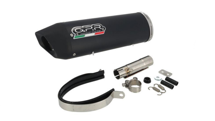 Die GPR Auspuffanlage erfüllt die Euro 5 Abgasnormen und besitzt eine E-Nummer. Sie ist europaweit zugelassen und kann somit problemlos im Straßenverkehr verwendet werden. Der Schalldämpfer besitzt einen zur Not herausnehmbaren DB-Killer und ein Schutzgitter an der Endkappe. Die Montage des slip-on Auspuffes gestaltet sich Simpel, da kein Krümmer wie bei einer Komplettanlage dabei ist, muss man den Auspuff ganz einfach nur auf den alten Krümmer Stülpen und Befestigen. Der Auspuff ist aus Edelstahl, hat ein attraktives Design in Matt Schwarz.